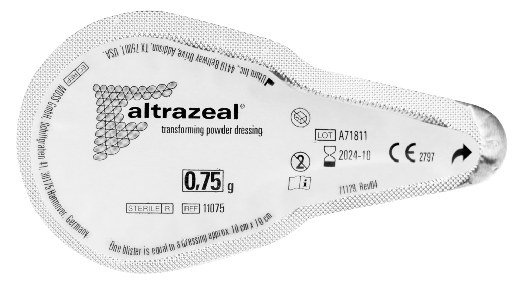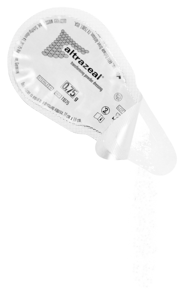 Altrazeal es un polvo transformable en matriz sintética que disminuye la cantidad de curaciones y promueve un ambiente adecuado para la rápida cicatrización de las heridas.