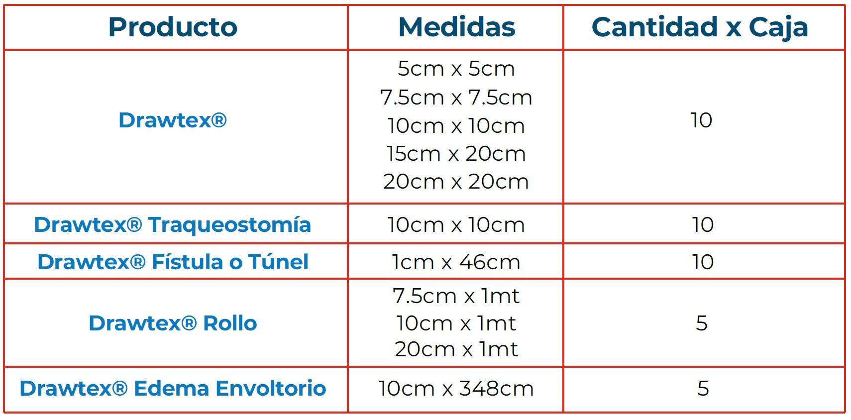 Drawtex® está recomendado para el manejo de heridas que requieren control activo del exudado y limpieza del lecho, incluyendo: